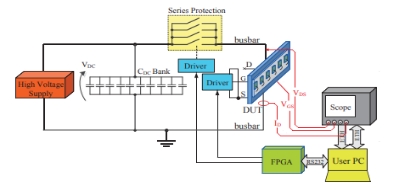 Two commercial SiC MOSFET power modules, Cree’s 1.2 kV/300 A and Rohm’s 1.2 kV/180 A, underwent a non-destructive testing (NDT) investigation at Aalborg University, Denmark. As shown in Figure 1, the NDT setup involved a high-voltage power supply charging a capacitor bank for testing up to 10 kA and 2.4 kV without device destruction. The system included protection switches, a computer-designed busbar for current distribution, and a 100 MHz FPGA for signal control and measurement acquisition. A PC facilitated data acquisition and remote control, linked to an oscilloscope and FPGA board. Cree's recommended gate driver, CGD15HB62P, was used with desaturation protection disabled. Experiments were conducted with gate-emitter voltages of +20 V/-6 V and a 5 Ω external gate resistance, ensuring proper controllability at a case temperature of approximately 25°C.